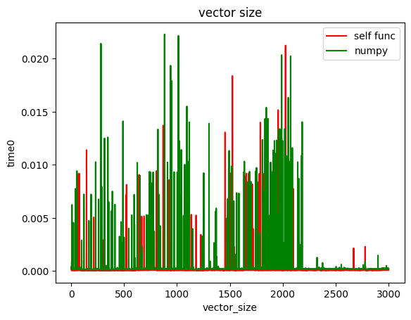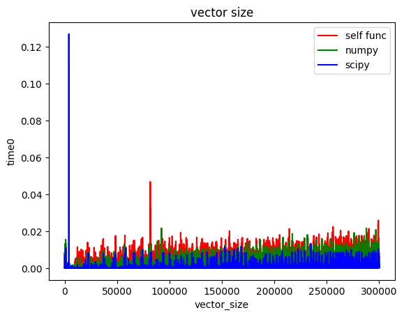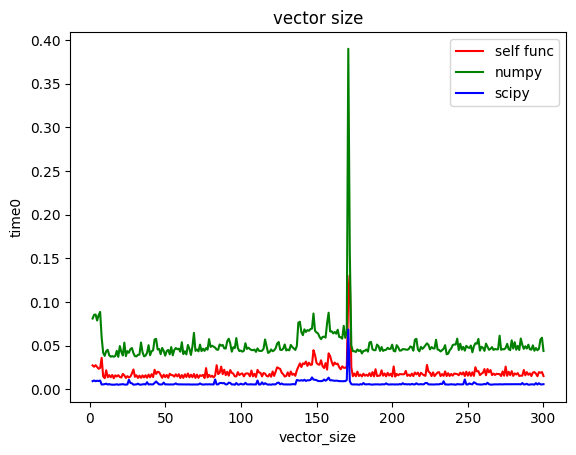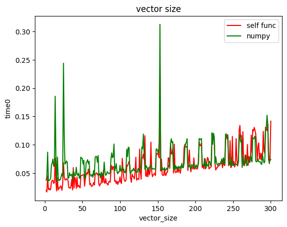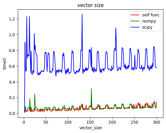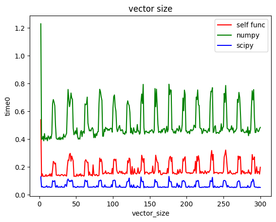 -300 길이의 벡터까지 각 함수를 500번씩 반복 수행