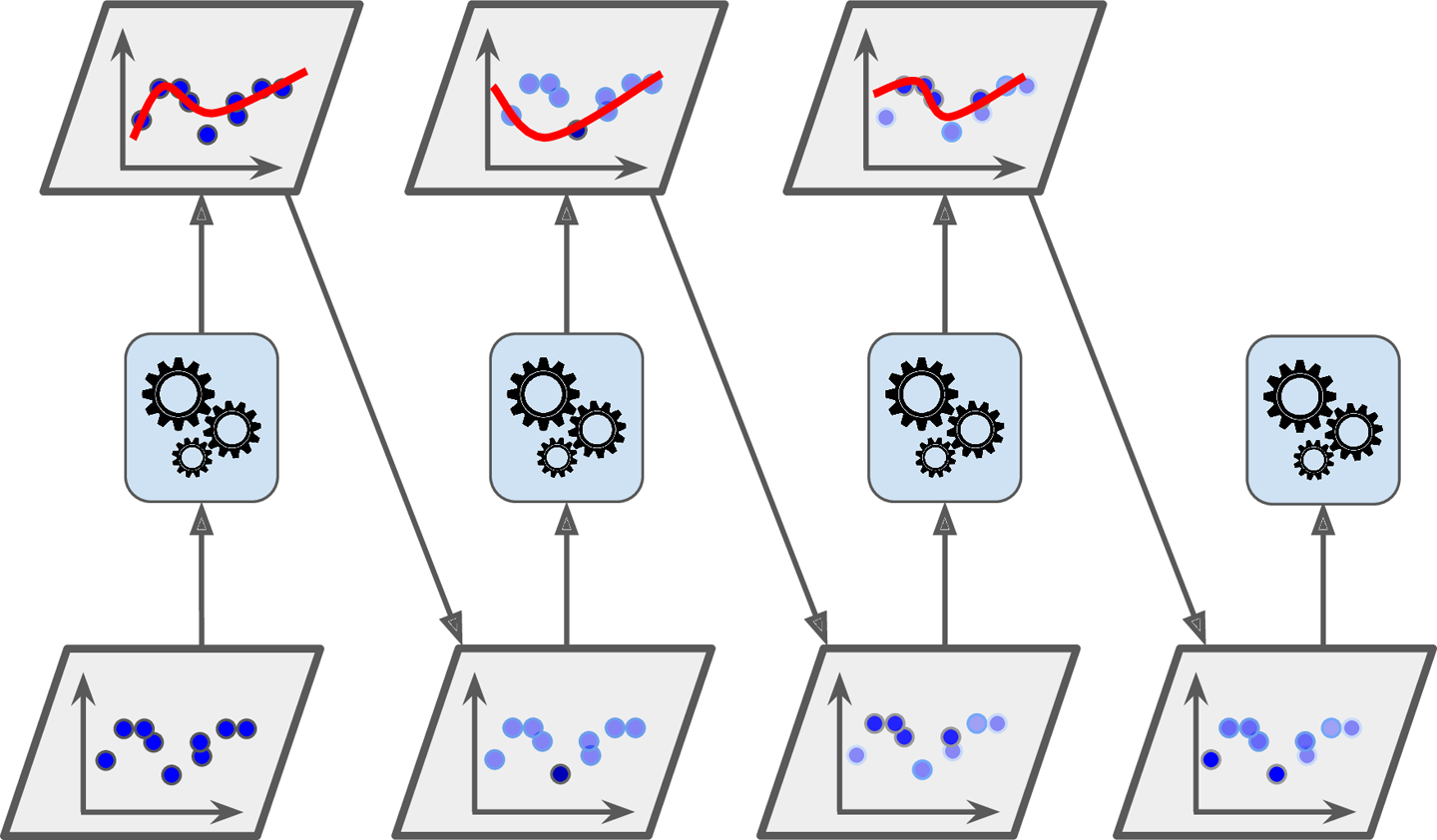즉, 데이터 샘플링 없이 y값 즉, 목표값을 수정해서 이전모델이 예측하지 못한 예측을 예측하는 방법