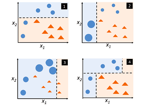 이러한 부스팅에는 에이다 부스트 AdaBoost와 그레이디언트 부스팅 Gradient boosting이 있다